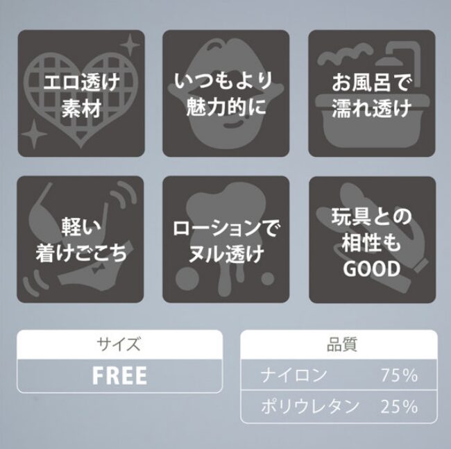 素材は、ナイロン75%・ポリウレタン25%となっており、極薄の生地で透け感があります。